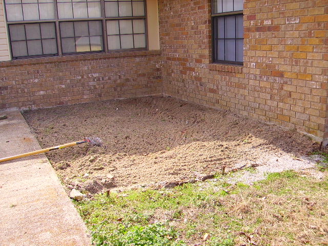 Nevertheless, here is the sand area, complete with shadow but sans board to keep it all in place. We’ll get a new board; the old one was termite-ridden. This is the usual spring cleanup ritual around our yard.