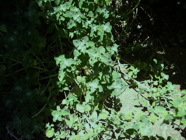Lemon grass, for sore throatPomegranate, for venous insufficiencyCatnip, for cats and other types of headachesHorehound, for coughCrampbark, um, for, um, cramps!Pot marigold amidst melissa, for shingles, etc.